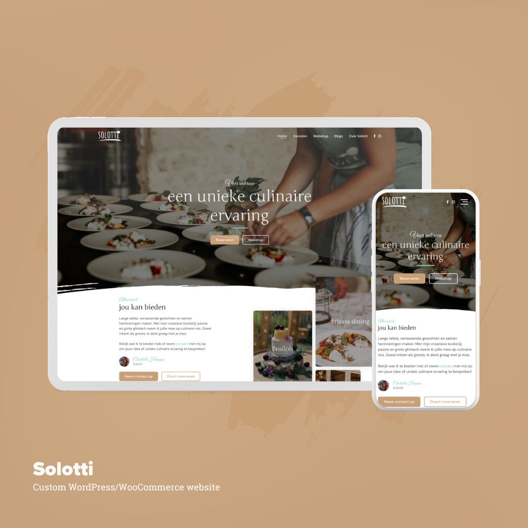 Super trots om te delen dat ik een nieuwe custom website/webshop heb opgeleverd voor Solotti!✨ Een paar maanden geleden vroeg Charlotte van Solotti mij om een nieuwe website te bouwen en nu is deze al een paar weken live. Een custom WordPress site met WooCommerce integratie, perfect voor al haar smakelijke avonturen. Solotti heeft ook niet stilgezeten: ze schitterde in B&B Vol Liefde, bracht een eigen kookboek (E-book) uit en haar eerste Pop-up Solottoria was via de nieuwe webshop binnen no-time uitverkocht! Check de nieuwe site en ontdek alle heerlijke details: www.solotti.com. Heb jij ook een smaakvol project in gedachten? Ik sta altijd open voor nieuwe, lekkere uitdagingen en samenwerkingen!